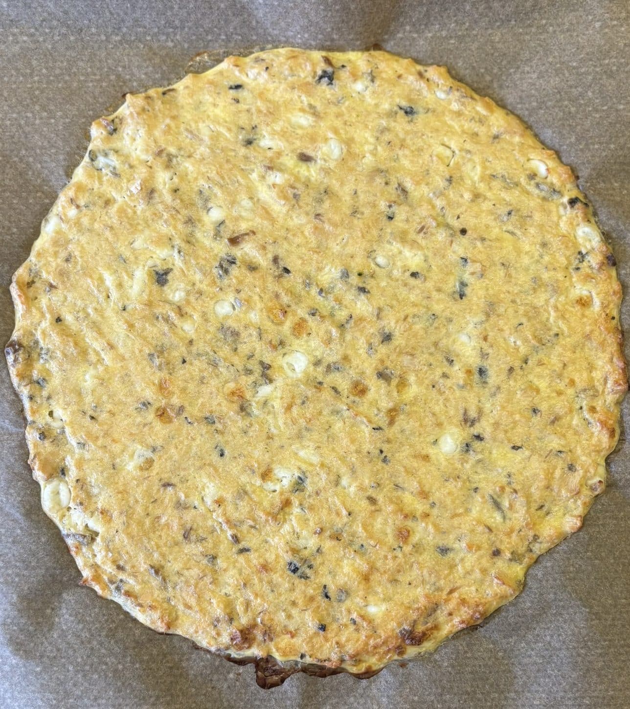 Der Low-Carb-Thunfisch-Pizzaboden besteht aus nur drei Zutaten und man kann ihn nach Lust und Laune belegen. Genau wie normale Pizza.